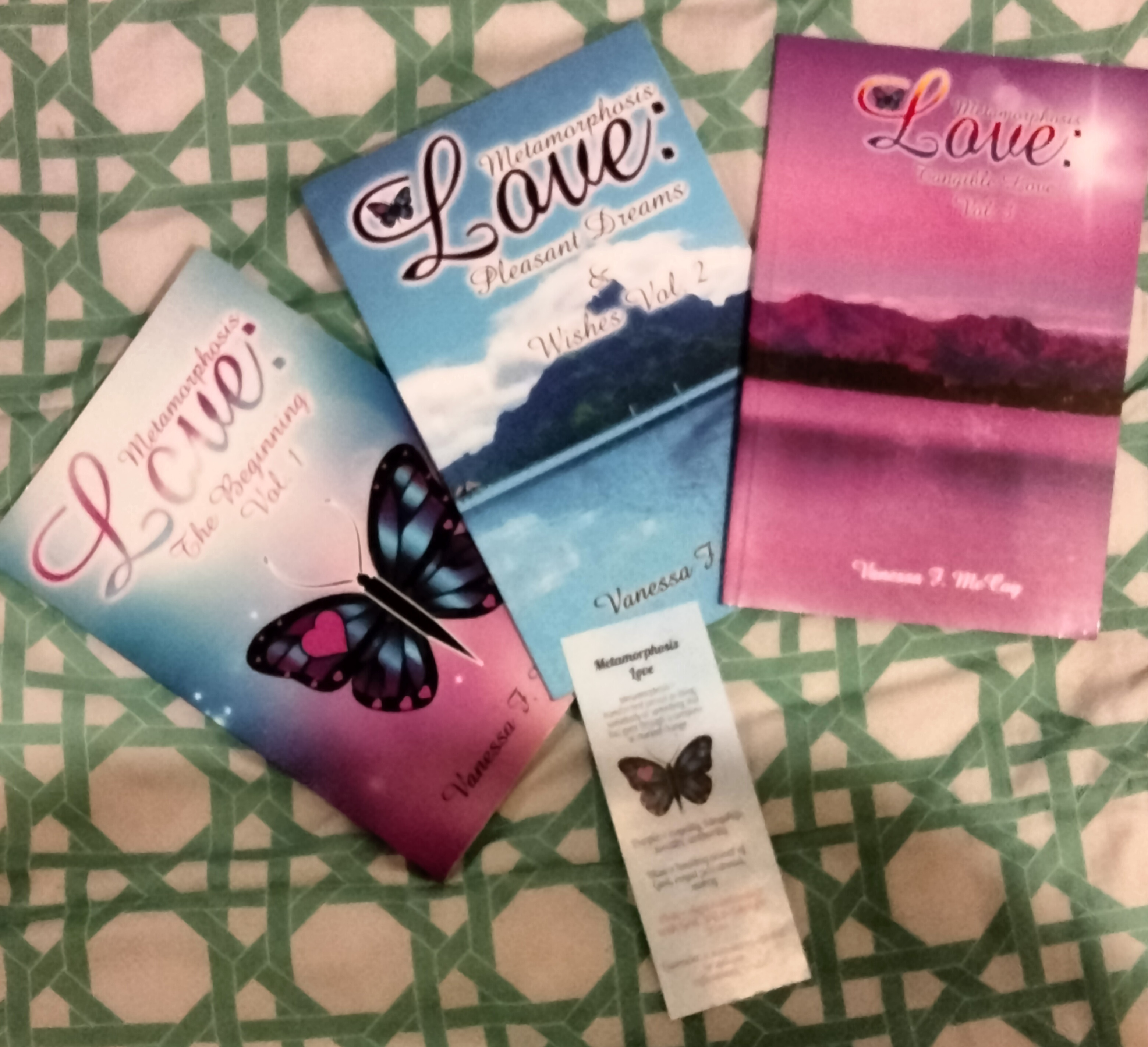 3 – Metamorphosis Love paperbacks *The Beginning Vol.1 *Pleasant Dreams & Wishes Vol. 2 *Tangible Love Vol. 3 1 – ML handmade color bookmark (color varies) Autograph included. Shipping fee included.