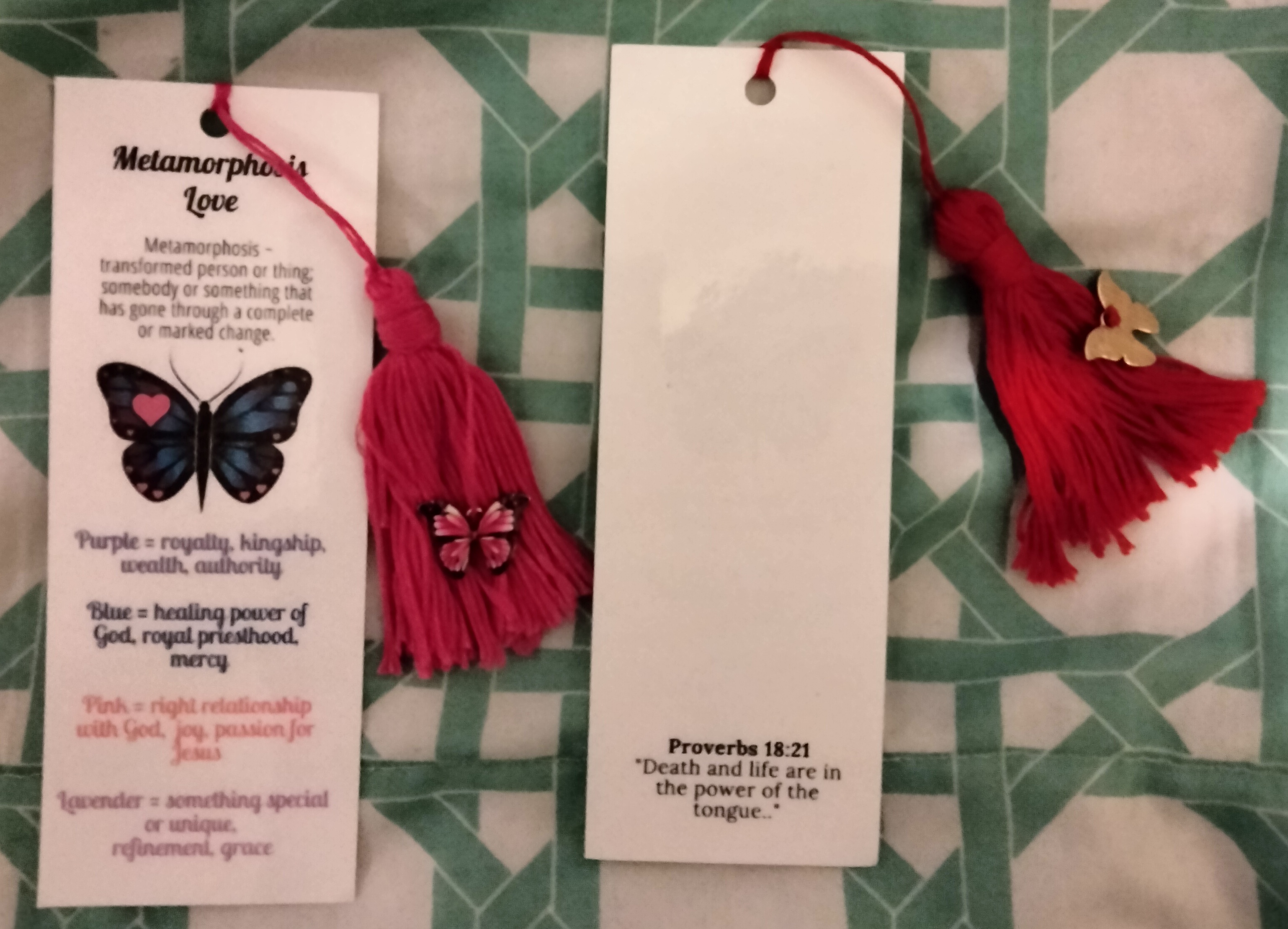 3 – Metamorphosis Love handmade color bookmarks for $15. Various colors. Shipping fee included.