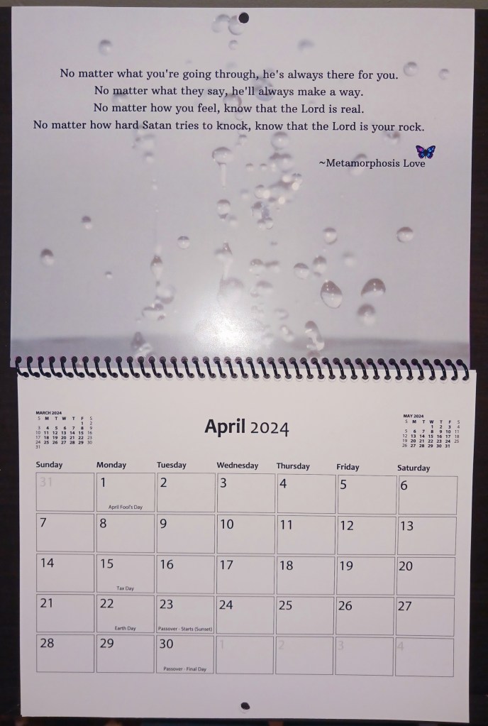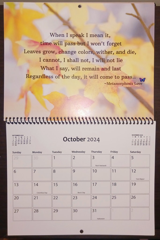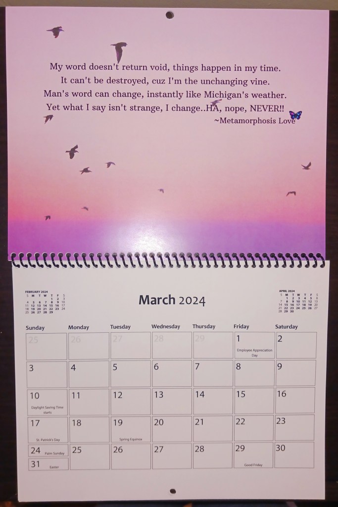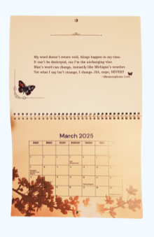 This calendar can be used to keep you on track or plan your day. The snippets of inspirational poems can be read to brighten up your day. Click on the link below to purchase